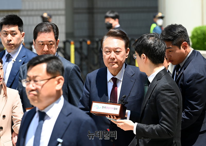 윤석열 전 대통령이 12일 서울 서초구 중앙지방법원에서 열린 내란 우두머리 혐의, 직권남용 권리행사방해 혐의 사건 3차 공판에서 오전 재판 종료 후 법원을 나서고 있다. (사진=공동취재단)