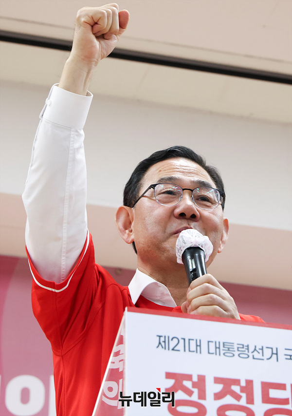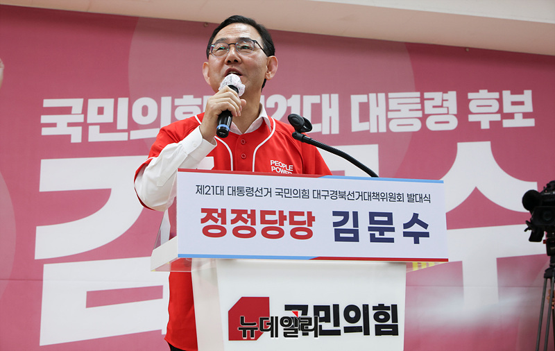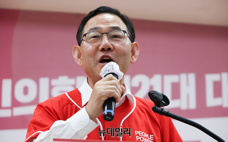 주호영 대구 총괄선대위원장이 13일 오전 국민의힘 대구시당에서 열린 대구경북선거대책위원회 출정식 및 임명장 수여식에서 인사말을 하고 있다.