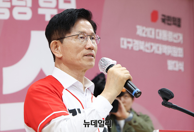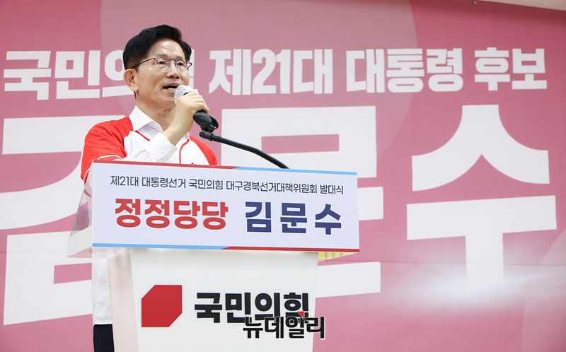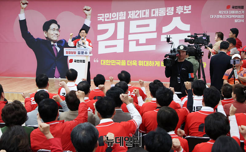김문수 국민의힘 대선 후보가 13일 오전 국민의힘 대구시당에서 열린 대구경북선거대책위원회 출정식 및 임명장 수여식에서 인사말을 하고 있다.