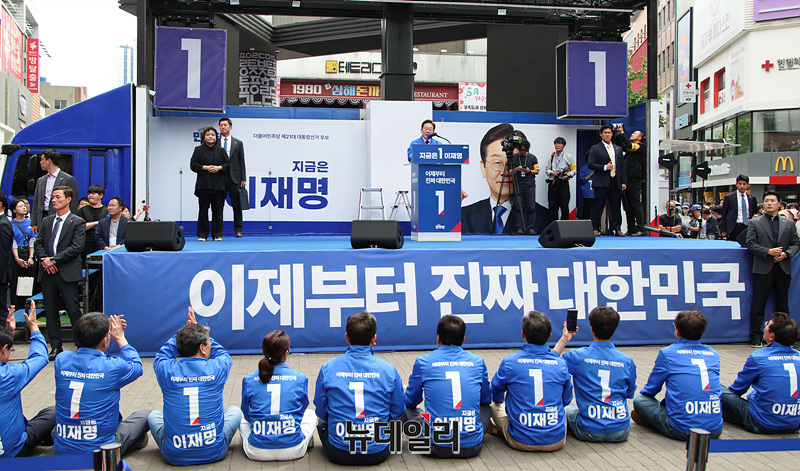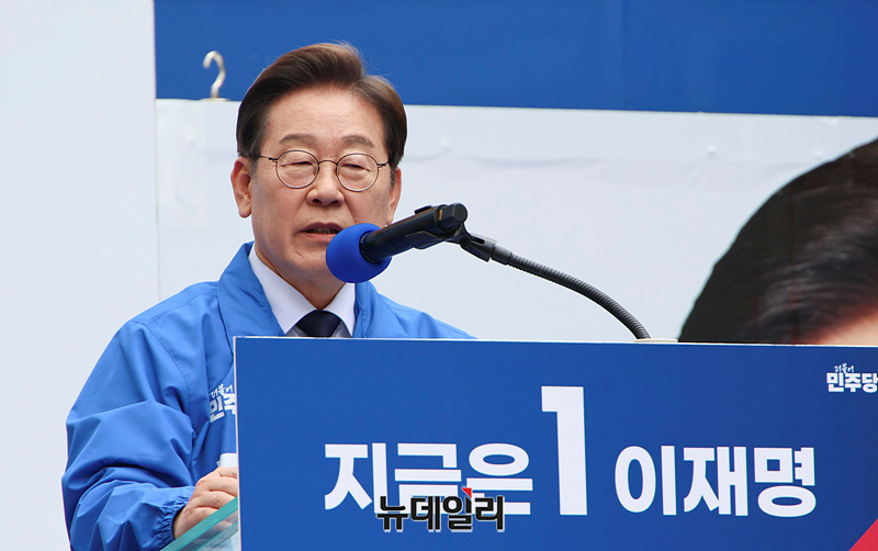 이재명 더불어민주당 대선 후보가 13일 오후 대구 중구 대구백화점 앞에서 열린 유세현장에서 지지를 호소하고 있다. (대구=서성진 기자)
