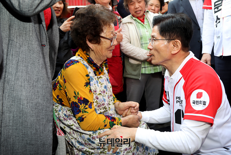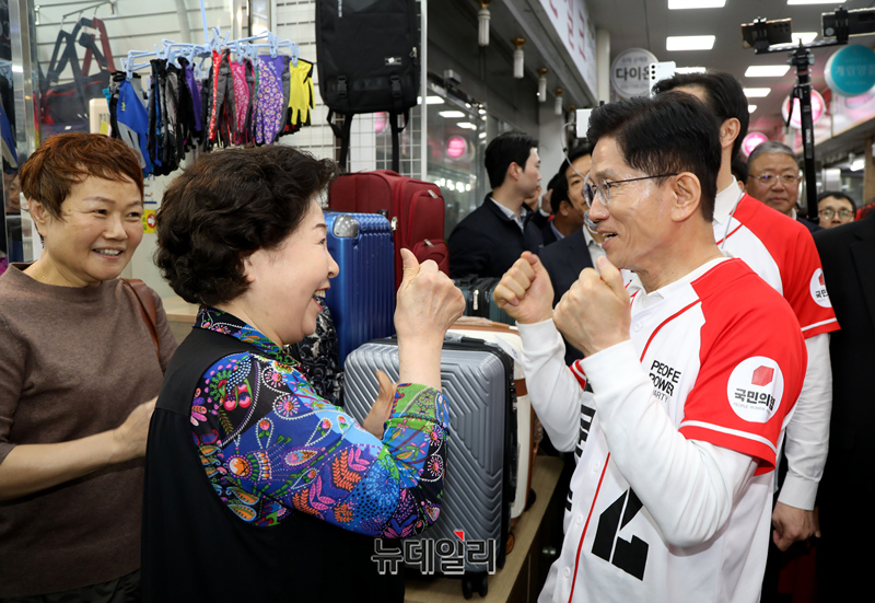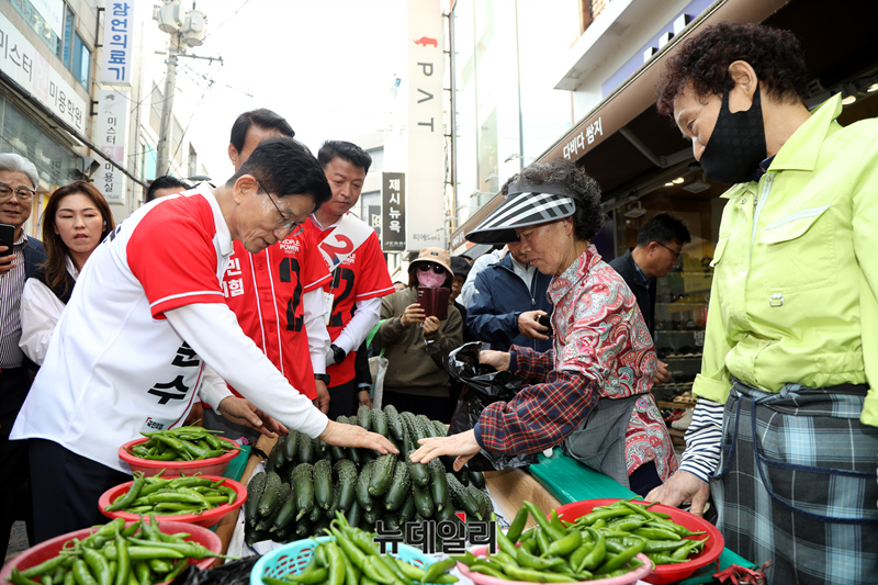 [포토] 진주중앙시장서 첫 일정 시작하는 김문수 후보