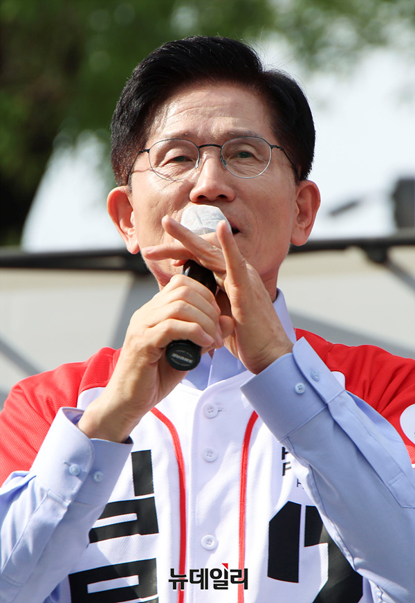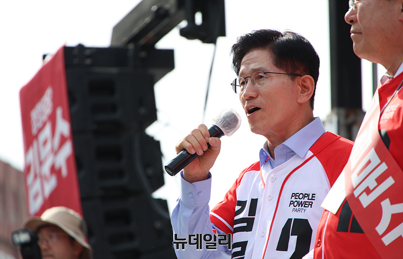 김 후보는 경남 지역에서 현장 방문과 유세 일정을 마치고 서울로 이동할 예정이다. (경남 밀양=서성진 기자)