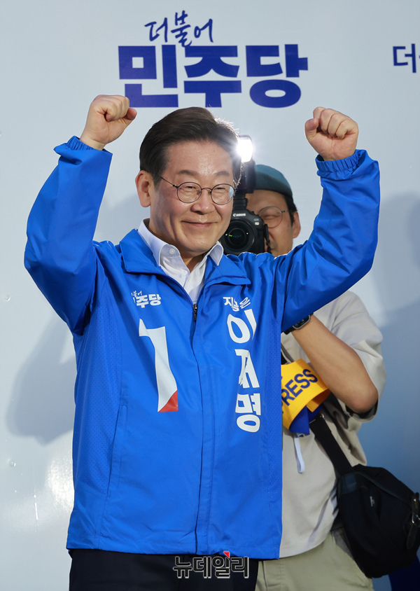 [포토] 두 주먹 주먹 불끈 쥔 이재명 후보