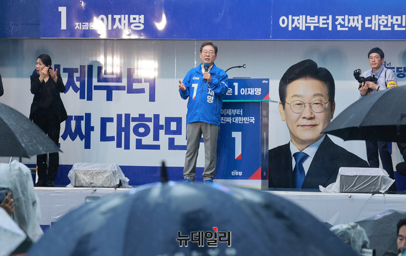 [포토] 이재명 민주당 대선 후보, 전남 순천 '우중유세'