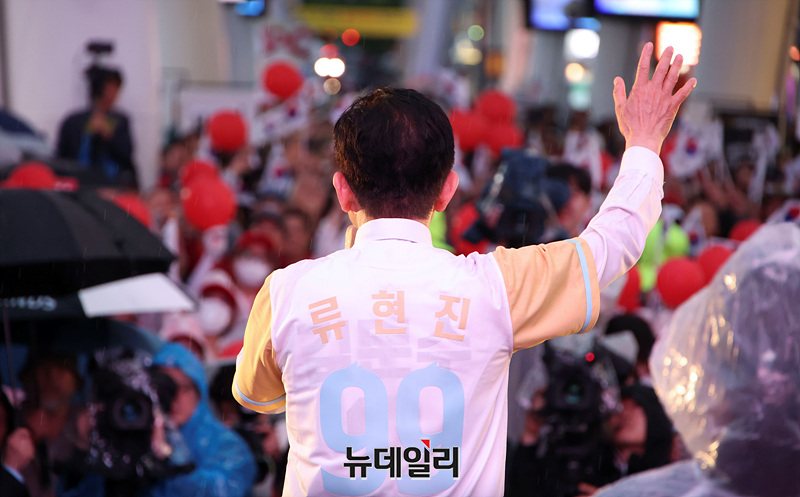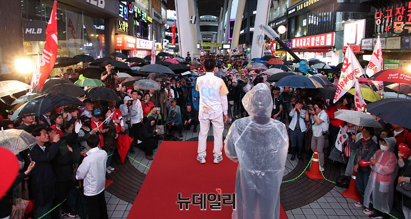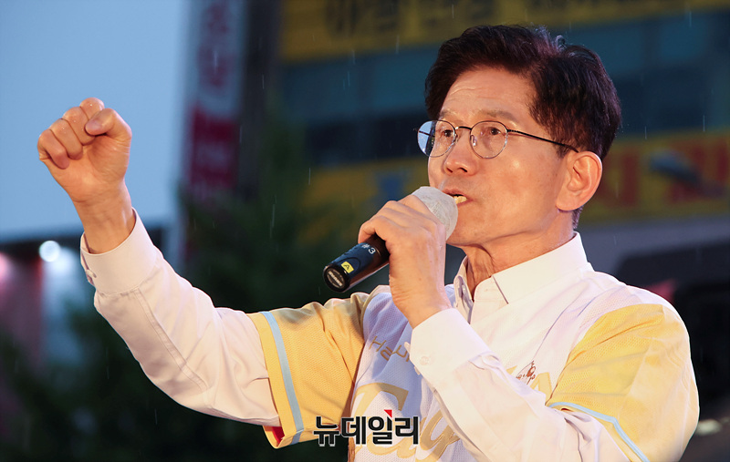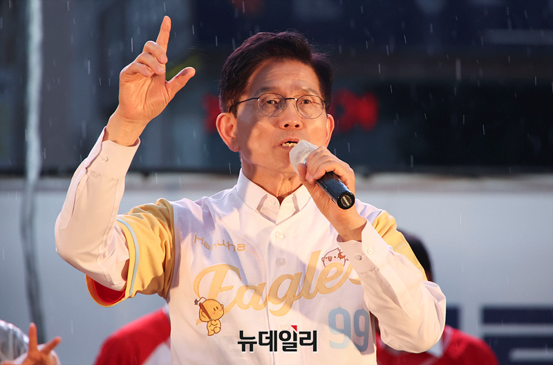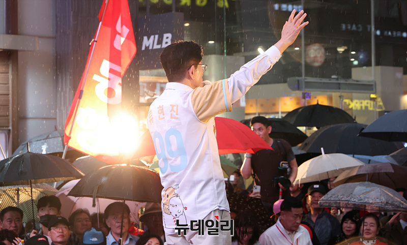 김문수 국민의힘 대선 후보가 6·3 대선 공식 선거운동 닷새째인 16일 오후 대전 중구 으능정이거리에서 열린 유세현장에서 지지를 호소하고 있다. (대전=서성진 기자)