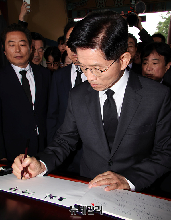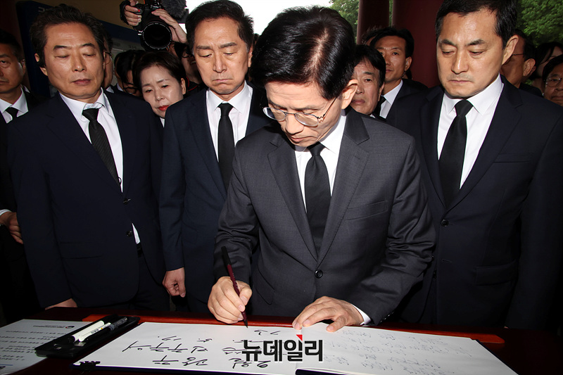 [포토] 5.18민주묘지 방명록 작성하는 김문수 후보