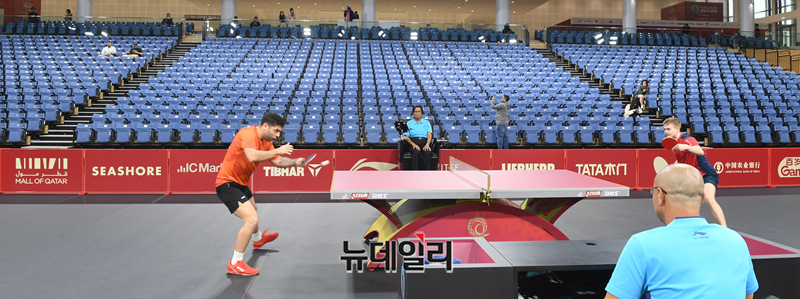 18일 2025 국제탁구연맹(ITTF) 세계선수권대회가 열리는 카타르 도하 카타르대학교 스포츠 콤플렉스의 관중석이 텅텅 비어 있다. (사진=공동취재단)