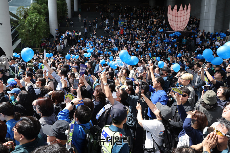 [포토] 용산역 광장에 모인 이재명 지지자들