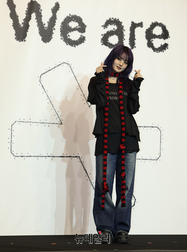 걸그룹 아이들 민니가 19일 오후 서울 강남구 조선팰리스에서 열린 미니8집 'We Are(위 아)' 쇼케이스에서 포즈를 취하고 있다.