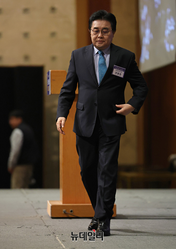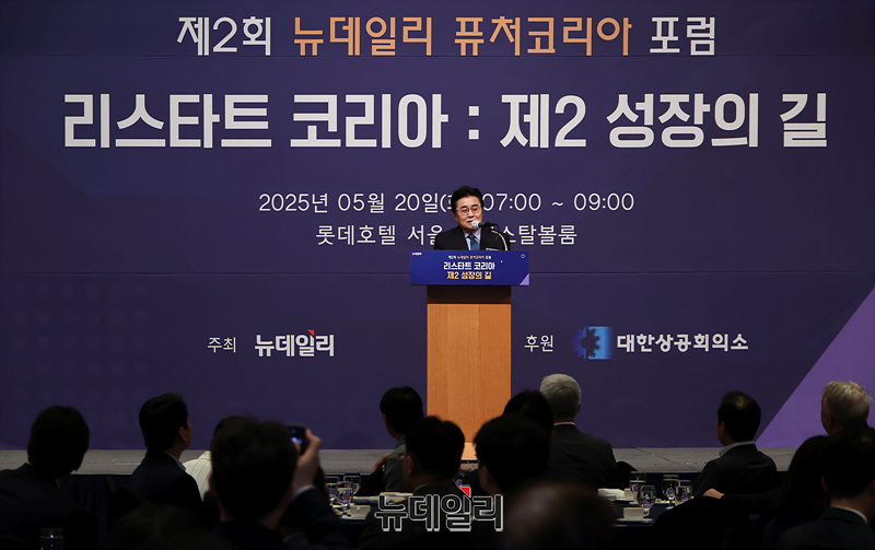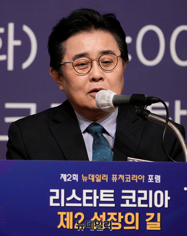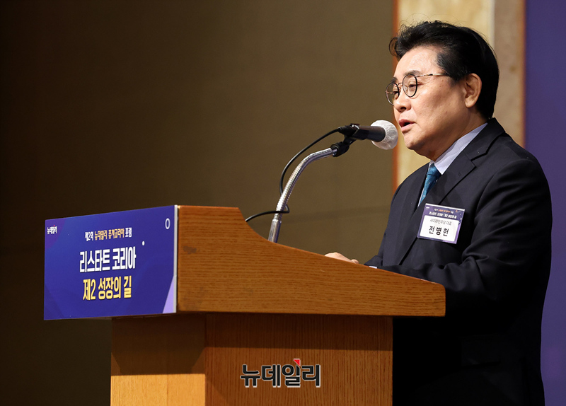 전병헌 새미래민주당 대표가 20일 오전 서울 중구 롯데호텔에서 '리스타트 코리아 : 대한민국 제2 성장의 길'을 주제로 열린 '제2회 뉴데일리 퓨처코리아 포럼'에서 축사를 하고 있다.제2회 뉴데일리 퓨처코리아 포럼은 대한민국이 한강의 기적을 넘어 지속 가능한 미래로 나아가기 위해 정치·사회 시스템과 산업·기술 구조 전반에 걸쳐 어떤 새로운 성장 전략을 세워야 하는지 조망하고자 마련됐다.이번 포럼에서는 윤희숙 여의도연구원장과 대한민국 첫 우주인 후보인 고산 에이팀벤처스 대표가 각각 주제 강연을 맡았다.