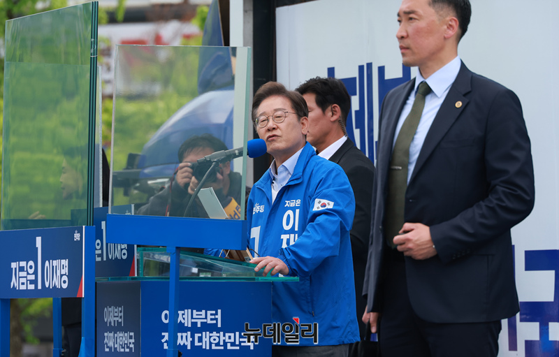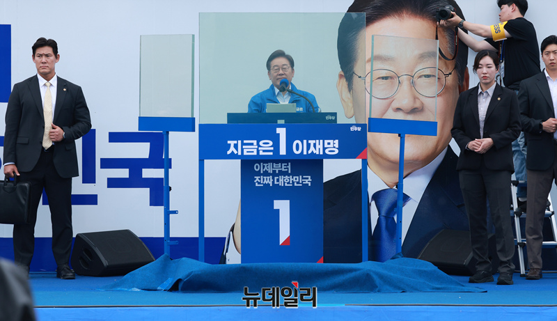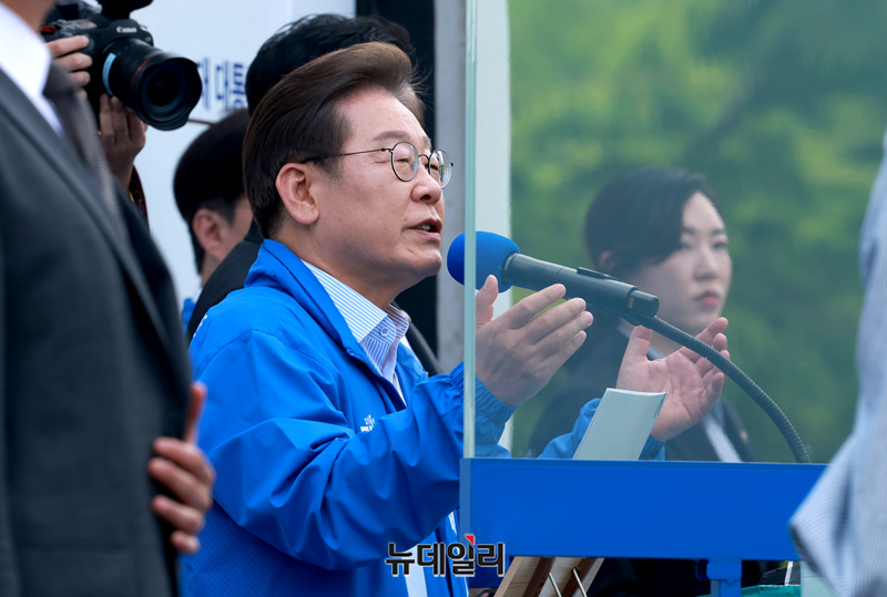 이재명 더불어민주당 대선 후보가 20일 오후 경기 고양시 일산문화광장에서 열린 집중 유세 현장에서 지지를 호소하고 있다.