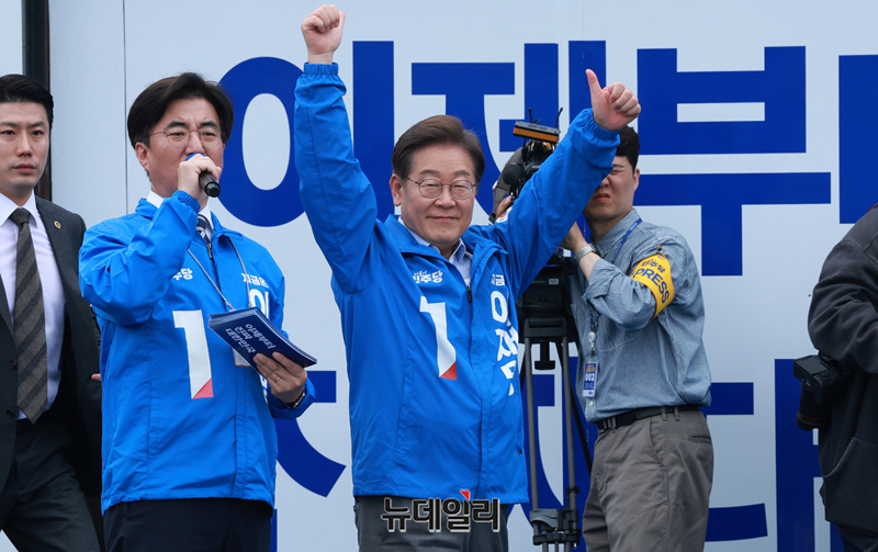 이재명 더불어민주당 대선 후보가 20일 오후 경기 고양시 일산문화광장에서 열린 집중 유세에서 지지를 호소하고 있다.