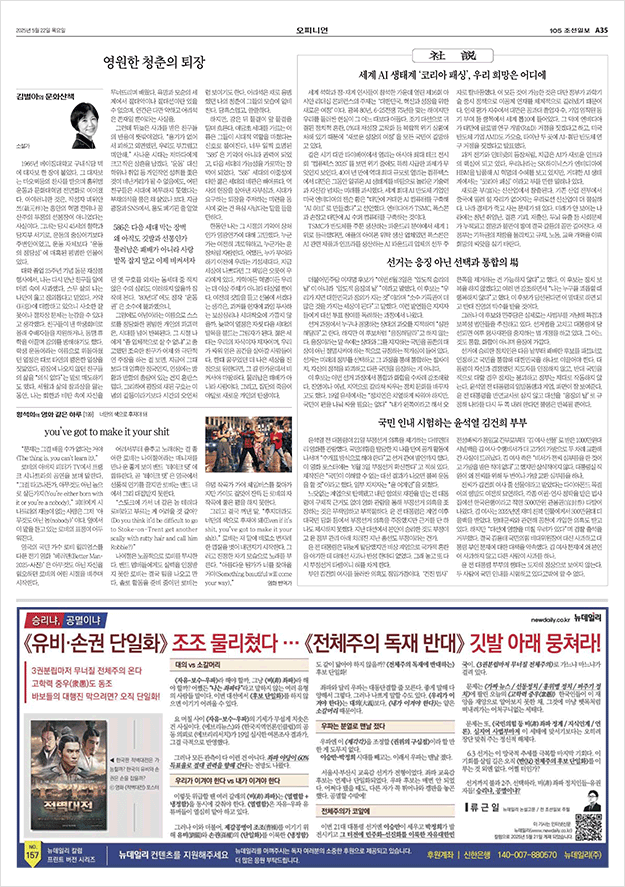 ■ 대의 vs 소갈머리《자유-보수-우파》라 해야 할까, 그냥《비(非) 좌파》라 해야 할까?어쨌든 “나는 좌파다” 라고 말하지 않는 여러 유형의 사람들 말이다.이번 대선에서《후보 단일화》를 하지 않으면 이기기 어려울 수 있다.요 며칠 사이《자유-보수-우파》의 기세가 무섭게 치솟은 건 사실이다.《에브리뉴스》와《한국지역언론인클럽》의 공동 의뢰로《에브리리서치》가 19일 실시한 여론조사결과가, 그걸 극적으로 반영했다.그러나 모든 관측이 다 이런 건 아니다.좌파 야당이 60% 득표율로 절대권력을 향해간다 는 전망도 나왔다.■ 우리가 이겨야 한다 vs 내가 이겨야 한다이렇듯 위급할 땐 여러 갈래의《비(非) 좌파》는《열렬함 + 냉정함》을 동시에 갖춰야 한다.《열렬함》은 자유-우파 유튜버들이 열심히 맡아 하고 있다.그러나 이와 더불어, 제갈공명이 조조(曹操)를 이기기 위해 유비(劉備)와 손권(孫權)의《단일화》를 이룩한《냉정함》도 같이 닮아야 하지 않을까?《전체주의 독재에 반대하는》후보 단일화!좌파와 달리 우파는 대동단결할 줄 모른다.좋게 말해 다양해서 그렇다.그러나 나쁘게 말할 수도 있다.《우리가 이겨야 한다》는 대의(大義)보다,《내가 이겨야 한다》는 얕은 소갈머리 때문이다.■ 우파는 분열로 맨날 졌다우파엔 이《제각각》을 조정할《권위의 구심점》이라 할 만한 게 도무지 없다.이승만-박정희 시대를 빼고는.이래서 우파는 맨날 졌다.서울시·부산시 교육감 선거가 전형이었다.좌파 교육감 후보는 언제나 단일화되었다.우파 후보는 매번 안 되었다.어쩌다 됐을 때도, 다른 자가 꼭 튀어나와 깽판을 놓곤 했다.공멸할 수밖에!■ 전체주의가 코 앞에이번 21대 대통령 선거엔 이승만이 세우고 박정희가 발전시키고 그 터전에 민주화-선진화를 이룩한 자유대한민국이,《3권분립마저 무너질 전체주의》로 가느냐 마느냐가 걸려 있다.문제는《가짜 뉴스 / 선동정치 / 홍위병 정치 / 퍼주기 정치》에 팔린 오늘의《고학력 중우(衆愚)》 한국인들이 이 재앙을 재앙으로 알아보지 못한 채, 그것에 마냥 뗏목처럼 떠내려가는 어처구니없는 세태다.문제는 또,《국민의힘 등 비(非) 좌파 정계 / 지식인계 / 언론》, 심지어 사법부마저 이 세태에 맞서기보다는 오히려 장단 맞춰 주는 정신적 해체다.6.3 선거는 이 망국적 추세를 극복할 마지막 기회다.이 기회를 살릴 길은 오직《반(反) 전체주의 후보 단일화》를 이루는 것 외엔 없다.어쩔 터인가?선거까지 불과 2주.선택하라, 비(非) 좌파 정치인들-유권자들!승리냐, 공멸이냐?