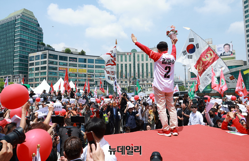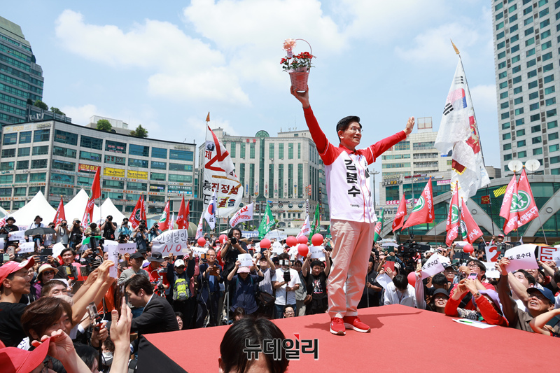 김문수 국민의힘 대선 후보가 21일 경기 고양시 덕양구 화정역 문화광장 앞에서 집중유세를 하고 있다. (경기 고양=이종현 기자)