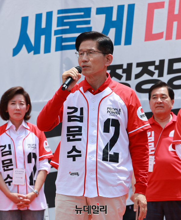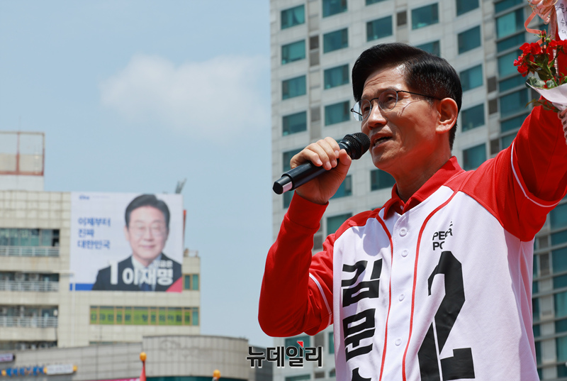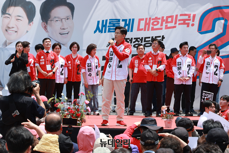 김문수 국민의힘 대선 후보가 21일 경기 고양시 덕양구 화정역 문화광장 앞에서 집중유세를 하고 있다. (경기 고양=이종현 기자)