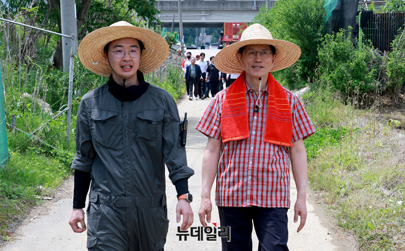 [포토] 청년농부와 농로 걷는 김문수 후보