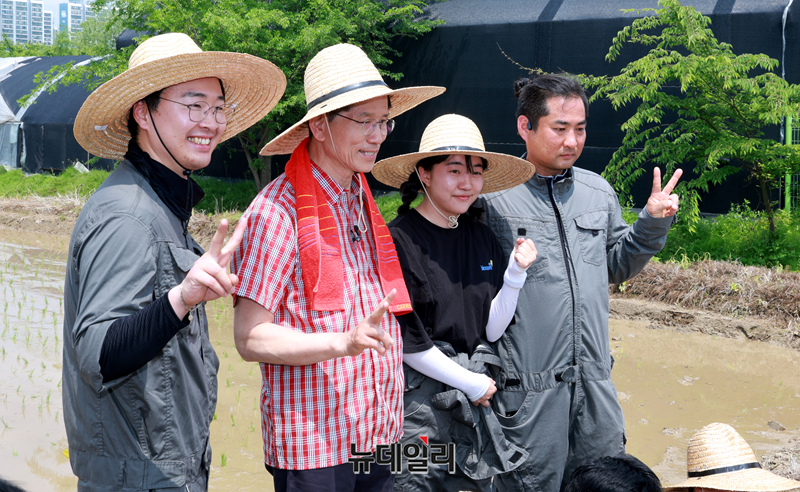 [포토] '청년농업인 모내기 및 새참간담회' 참석한 김문수