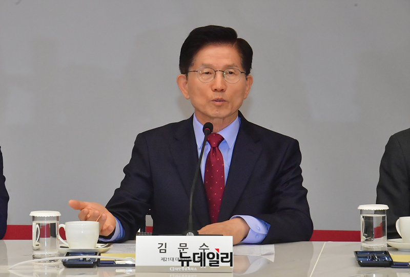 김문수 국민의힘 대통령 후보가 22일 오전 서울 중구 대한상공회의소에서 열린 경제 5단체장과의 간담회에서 인사말을 하고 있다.