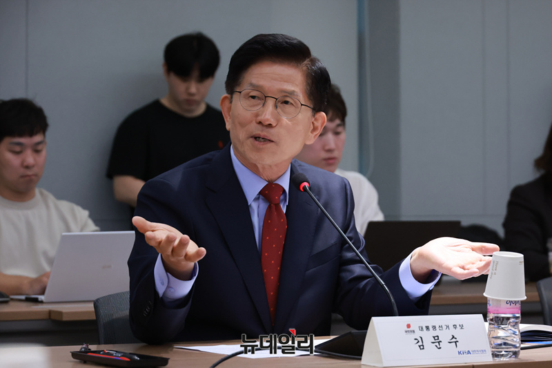 김문수 국민의힘 대선후보가 22일 오후 서울 용산구 대한의사협회에 열린 의협 회장단과 간담회에 참석해 모두발언 하고 있다.