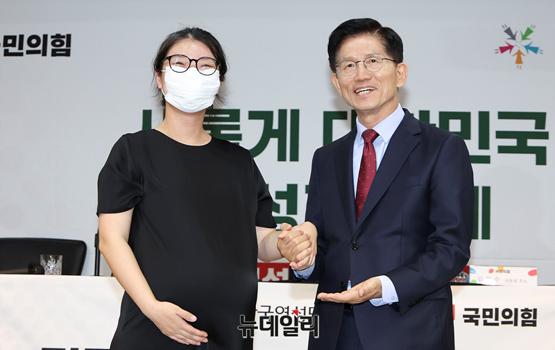 [포토] 임산부와 기념촬영하는 김문수 후보