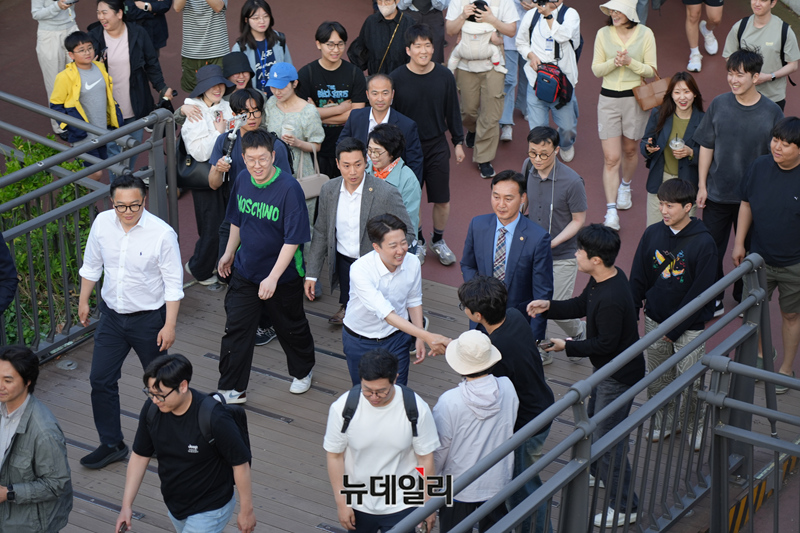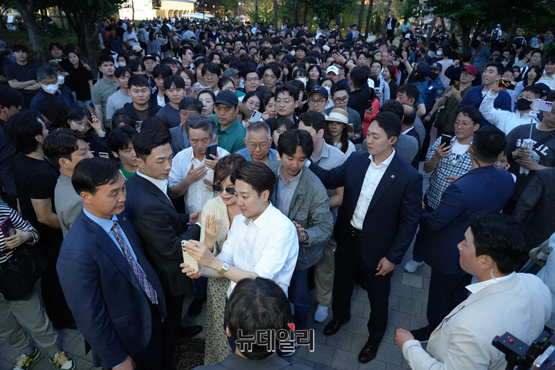 이준석 개혁신당 대선 후보가 6.3 대통령 선거를 9일 앞둔 25일 오후 서울 송파구 석촌호수 동호를 찾아 지지유세를 이어가고 있다. (사진=이준석 캠프)