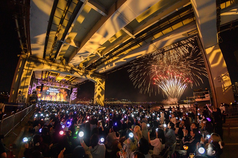 한강을 배경으로 펼쳐진 불꽃놀이는 파티의 성대함을 보여주기에 제격이었다. 앙코르곡 '아주 NICE'의 박자에 맞춰 황금색 불꽃이 화려하게 터지며 장관을 이뤘다. 달빛무지개분수를 활용한 연출 또한 볼거리를 더했다.