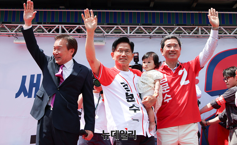 [포토] 김문수 후보 손잡은 손학규 전 대표