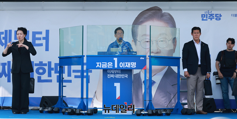 [포토] 수원서 지지호소 하는 이재명 민주당 대통령 후보