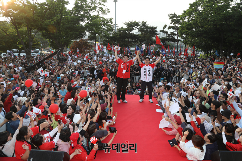 [포토] 도봉 유세서 손잡은 김문수-한동훈