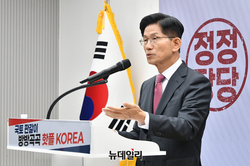김문수 국민의힘 대선 후보가 27일 오전 서울 여의도 국민의힘 중앙당사에서 '국토 판갈이 : 방방곡곡 핫플 KOREA - 새롭게 대한민국' 국토 발전 관련 공약발표 기자회견을 하고 있다.
