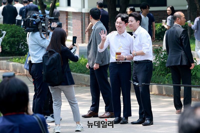 이준석 개혁신당 대선 후보가 28일 서울 여의도 여의도공원에서 도보유세를 하고 있다.