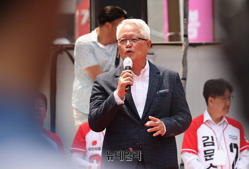 정의화 전 국회의장이 28일 오후 부산 부산진구 쥬디스태화 백화점에서 열린 김문수 대선후보 집중유세에서 찬조연설을 하고 있다.