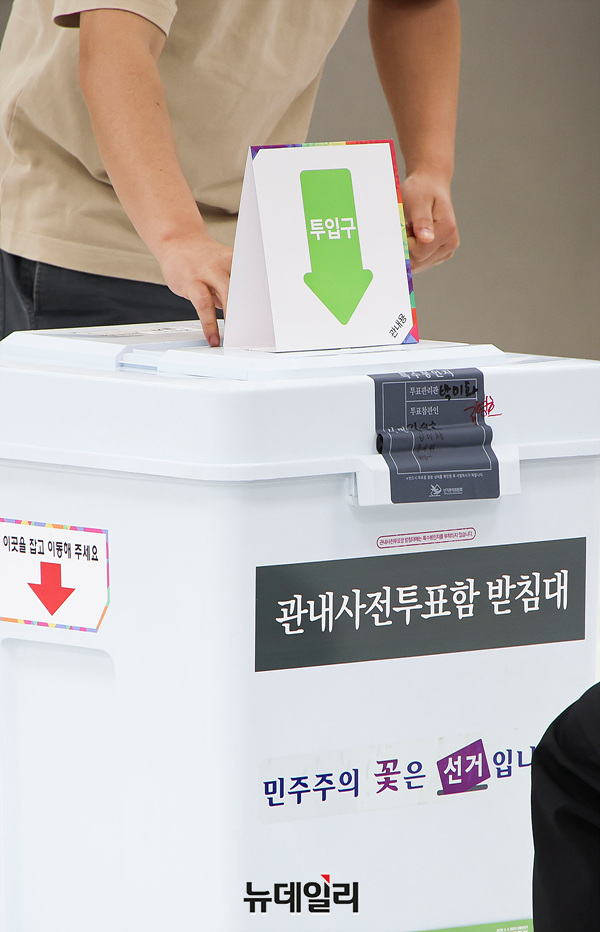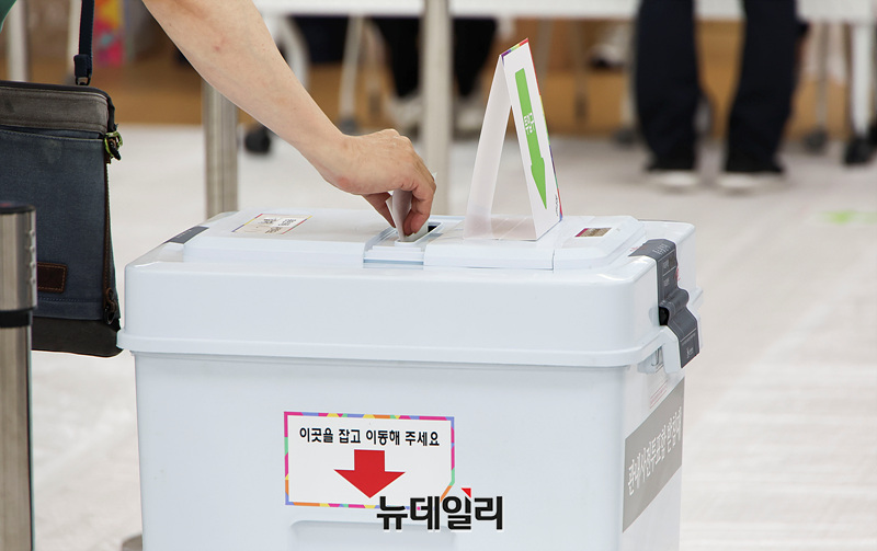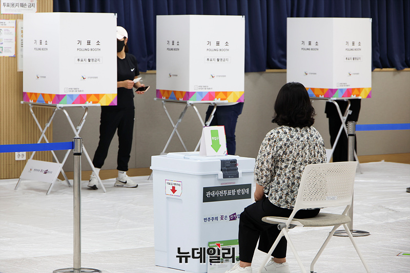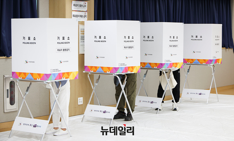 제21대 대통령 선거 사전투표가 시작된 29일 오전 경기 화성시 동탄9동 행정복지센터에 마련된 사전투표소를 찾은 시민들이 투표를 하고 있다.사전투표는 29일(목)부터 30일(금)까지 이틀간 매일 오전 6시부터 오후 6시까지 전국 사전투표소에서 진행된다. 선거일 기준 만 18세 이상 국민(2007년 6월 4일생 포함)이 투표할 수 있고 주민등록증, 여권, 운전면허증 등 생년월일과 사진이 포함된 공공기관 발행 신분증 또는 모바일 신분증(앱 실행화면 확인 가능, 캡처 이미지 불인정)을 지참해야 한다. (경기 화성=서성진 기자)