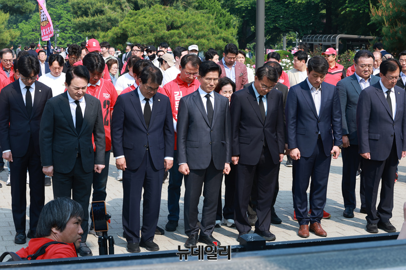 김문수 국민의힘 대통령 후보가 29일 인천 중구 자유공원 맥아더동상에 참배를 하고 있다. (인천=이종현 기자)