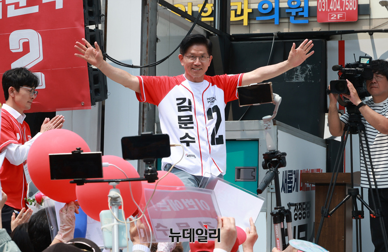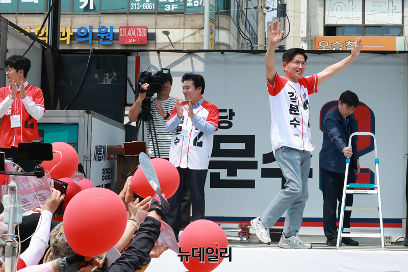 21대 대통령 선거 사전투표 첫 날인 29일 김문수 국민의힘 대통령 후보가 경기 시흥 삼미시장 인근에서 열린 유세에서 지지를 호소하고 있다. (경기 시흥=이종현 기자)