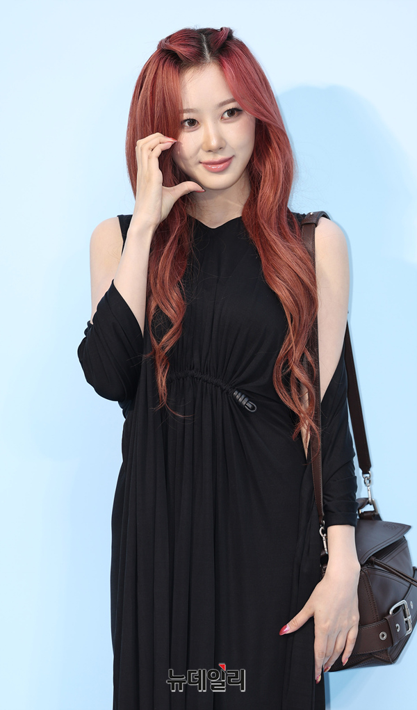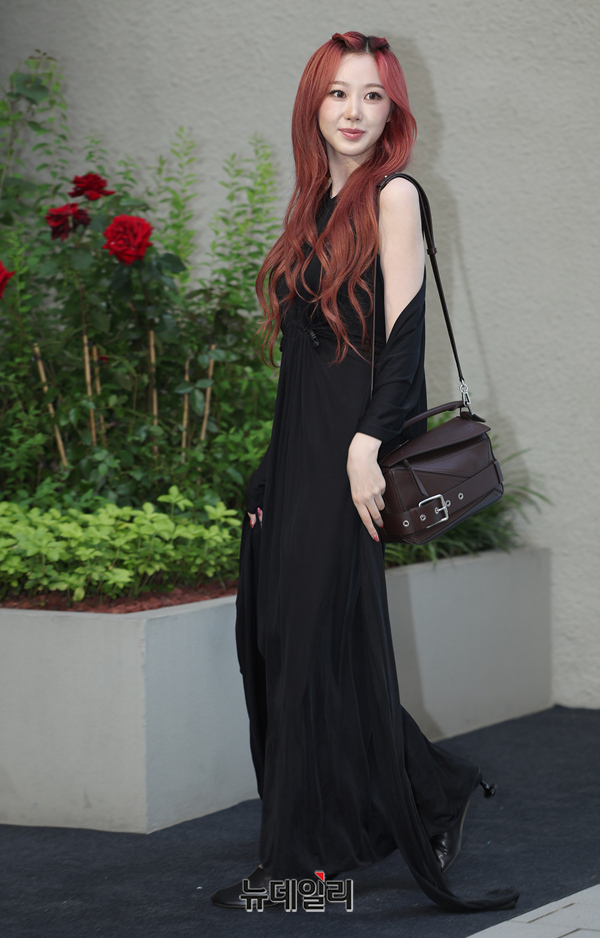 에스파 지젤이 29일 오후 서울 강남구 까사 로에베 서울에서 열린 퍼즐 백 10주년 기념 전시에서 포즈를 취하고 있다.