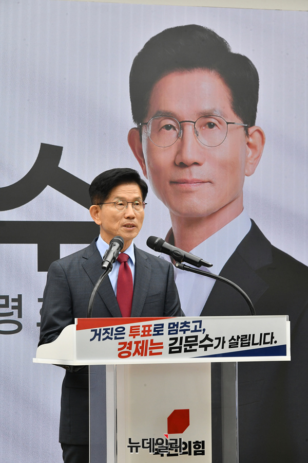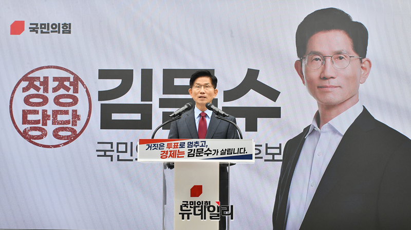 이날 김 후보는 "경제를 살리기 위해 이재명을 막아야 한다"며 "거짓말로 국민을 속이고 말이 앞선 사람은 절대로 경제를 살릴 수 없다. 무자격, 파렴치에 그때그때 말 바꾸기만 하는 후보는 반드시 퇴출시켜야 한다"고 밝혔다.