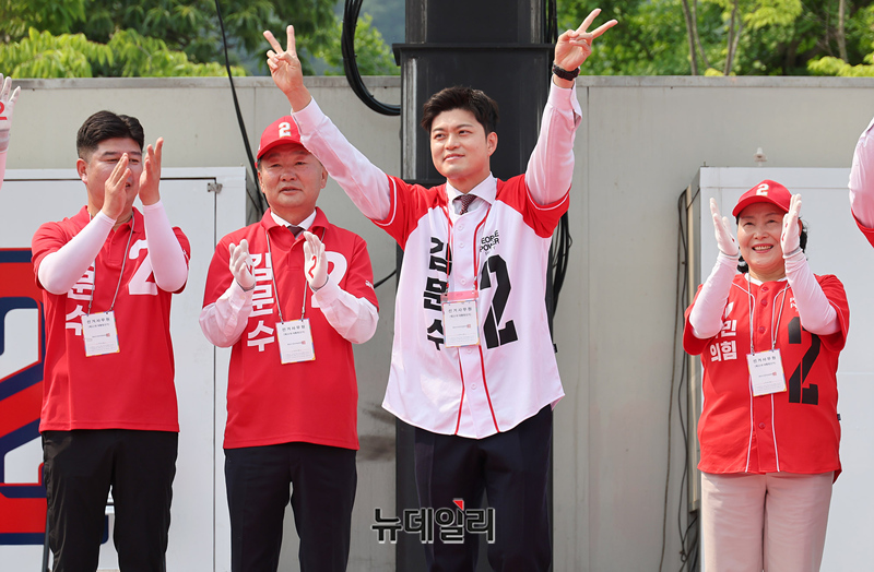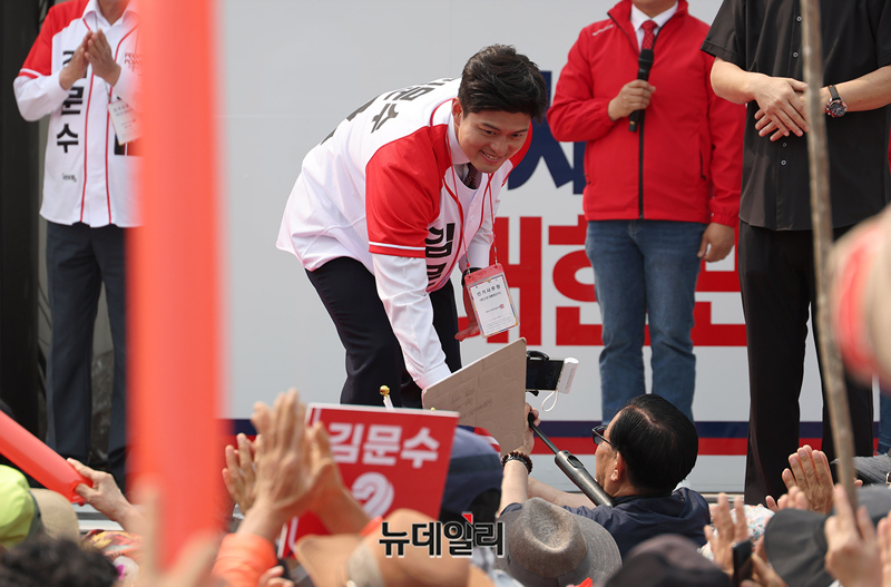 이날 국민의힘은 새미래민주당과 정책협약을 체결했다. 대선이 나흘을 앞두고 있는 김문수 국민의힘 대선 후보는 경기권과 충북, 강원 원주를 찾아 표심잡기에 나선다. (경기 가평=정상윤 기자)
