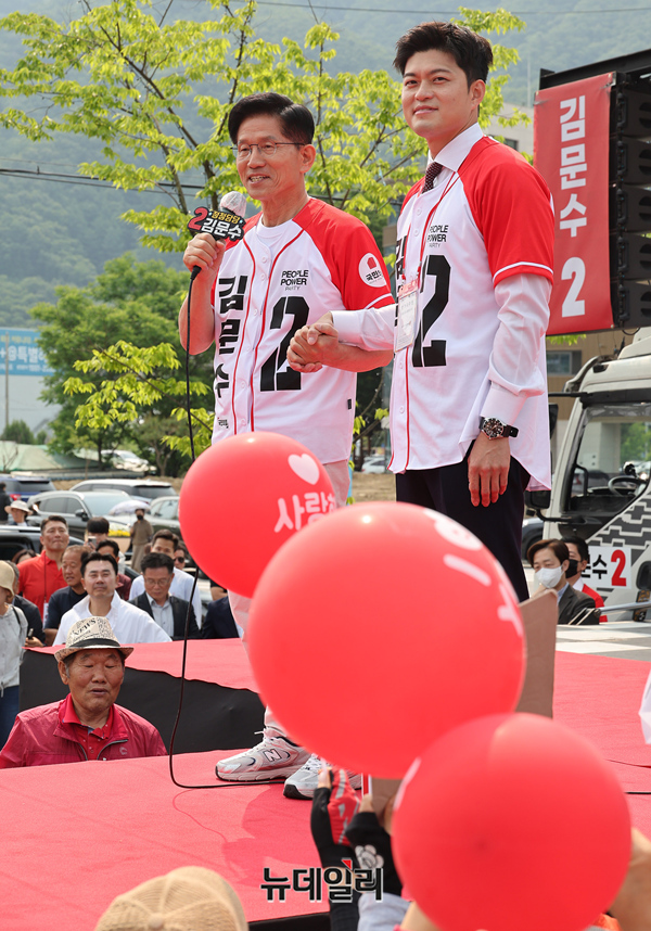 [포토] 김문수 후보와 지역구 가평 찾은 김용태 비대위원장