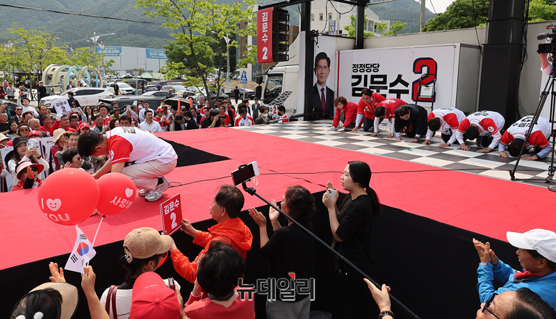 이날 국민의힘은 새미래민주당과 정책협약을 체결했다. 대선이 나흘을 앞두고 있는 김문수 국민의힘 대선 후보는 경기권과 충북, 강원 원주를 찾아 표심잡기에 나선다. (경기 가평=정상윤 기자)
