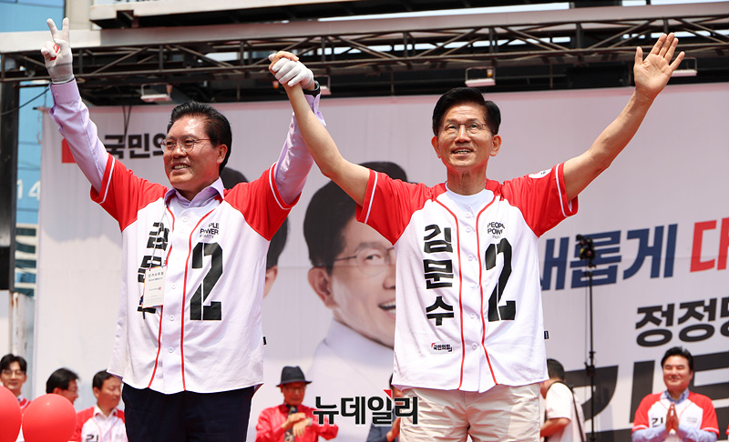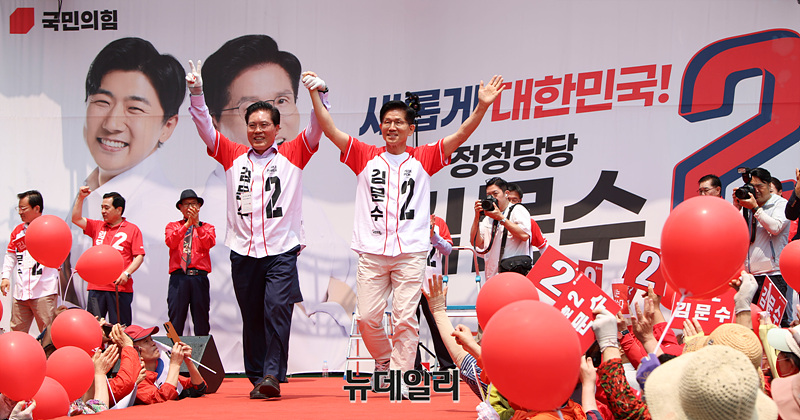 김문수 국민의힘 대선 후보가 30일 오전 경기 이천시 이천산림조합 앞에서 열린 유세현장에서 시민들을 향해 인사하고 있다. (경기 이천=서성진 기자)