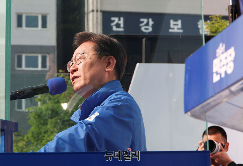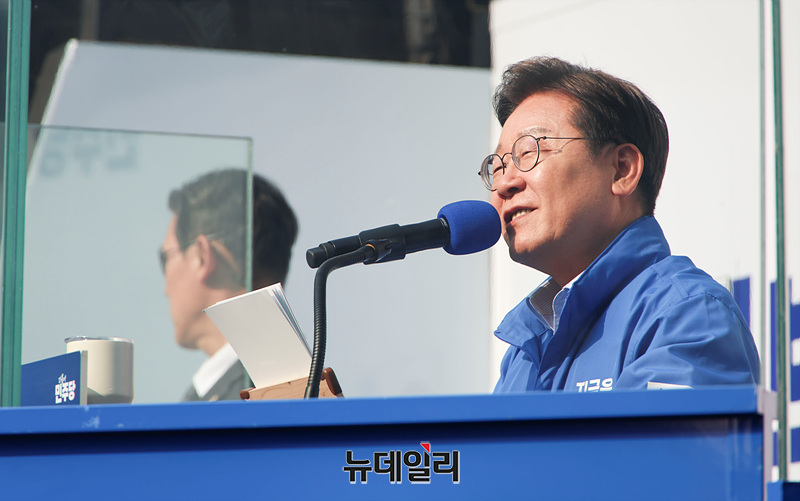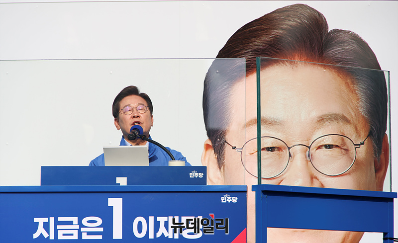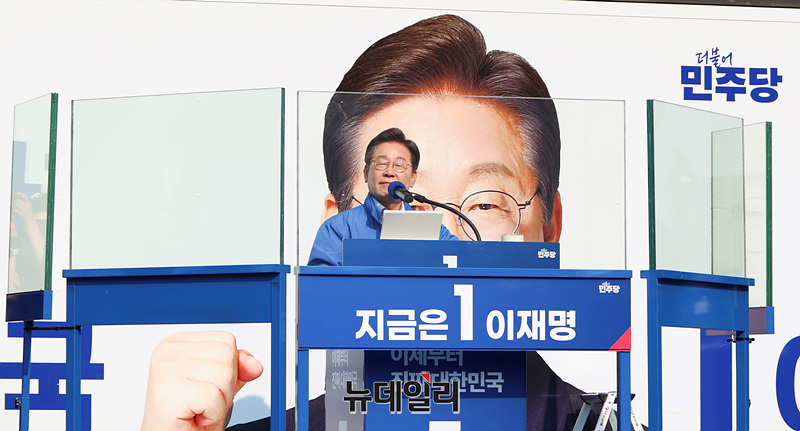 이재명 더불어민주당 대선 후보가 30일 오후 강원 원주행복마당에서 열린 유세현장에서 지지를 호소하고 있다. (강원 원주=서성진 기자)