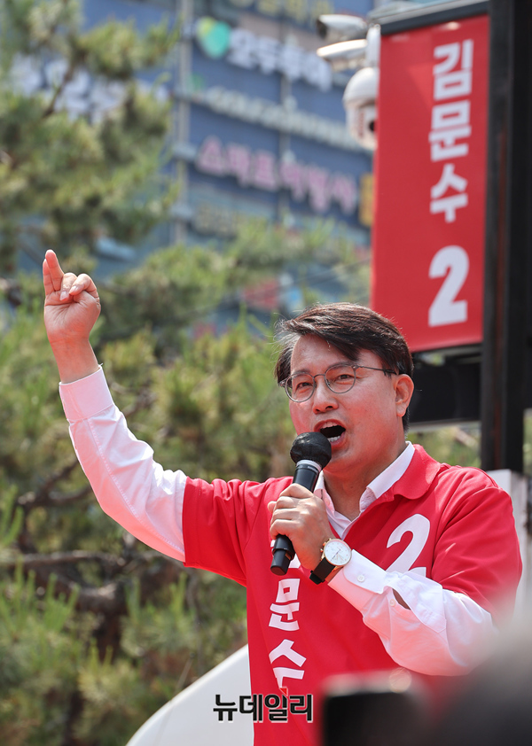 윤상현 국민의힘 공동선대위원장이 공식 선거운동 마지막 주말인 1일 오전 경기 성남시 야탑역광장에서 열린 김문수 대선후보 유세에서 지지호소를 하고 있다. 김 후보는 이날 수도권을 돌며 마지막 표심 잡기에 나선다. (경기 성남=정상윤 기자)