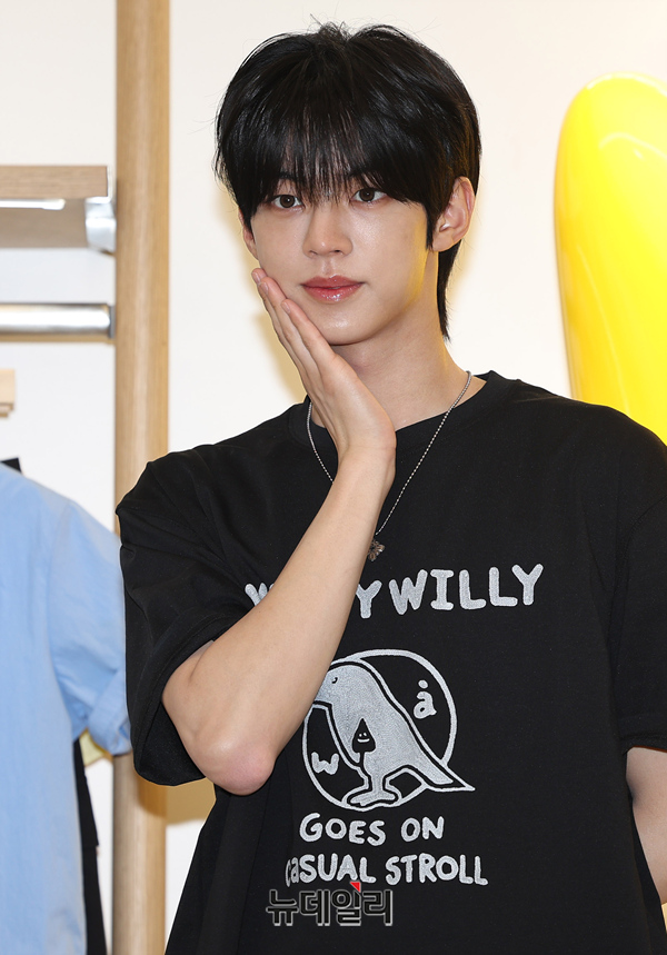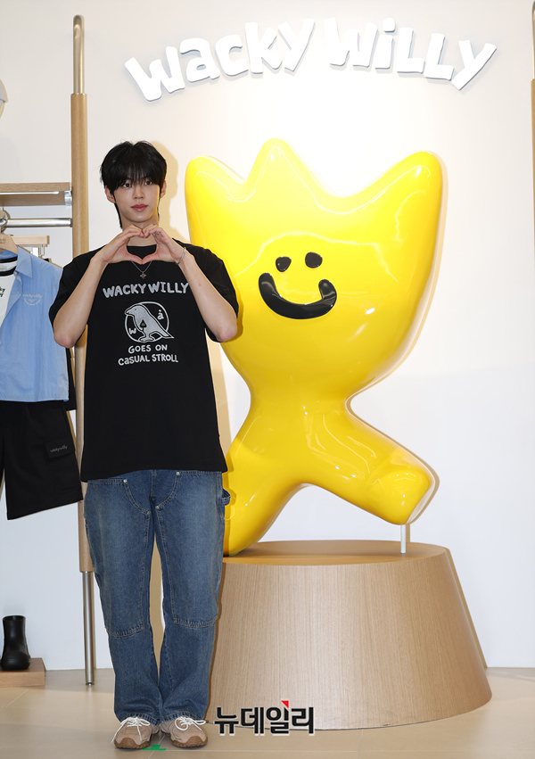 TWS(투어스) 도훈이 2일 오전 서울 중구 와키윌리 서울 플래그십 스토어에서 열린 오픈 기념 행사에서 포즈를 취하고 있다. 캐주얼 브랜드 와키윌리는 홍대점에 이어 명동에 두 번째 플래그십 스토어를 오픈했다.