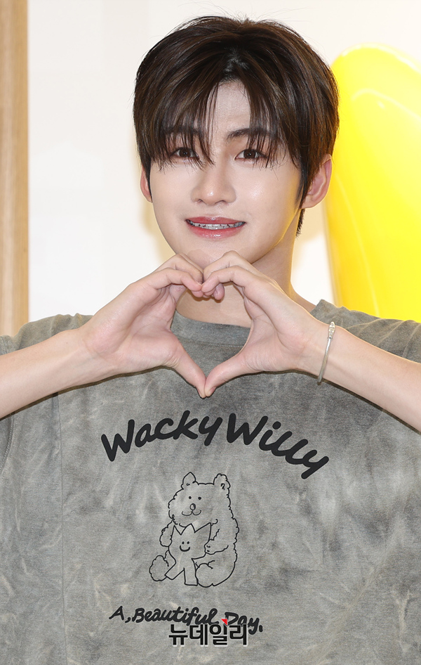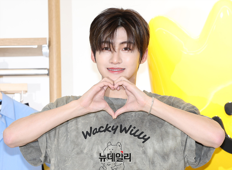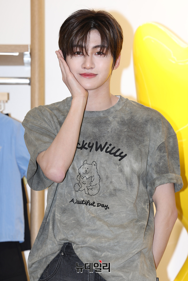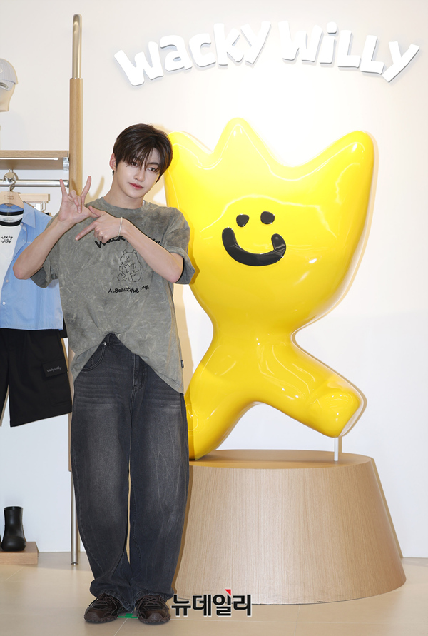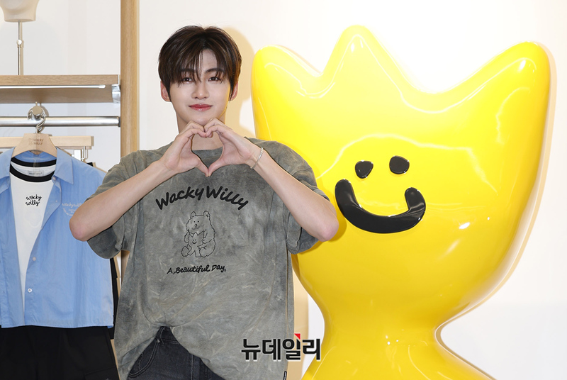 TWS(투어스) 지훈이 2일 오전 서울 중구 와키윌리 서울 플래그십 스토어에서 열린 오픈 기념 행사에서 포즈를 취하고 있다. 캐주얼 브랜드 와키윌리는 홍대점에 이어 명동에 두 번째 플래그십 스토어를 오픈했다.