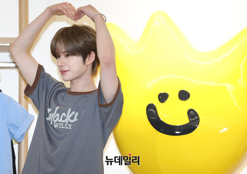 TWS(투어스) 경민이 2일 오전 서울 중구 와키윌리 서울 플래그십 스토어에서 열린 오픈 기념 행사에서 포즈를 취하고 있다. 캐주얼 브랜드 와키윌리는 홍대점에 이어 명동에 두 번째 플래그십 스토어를 오픈했다.