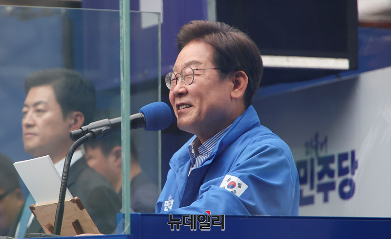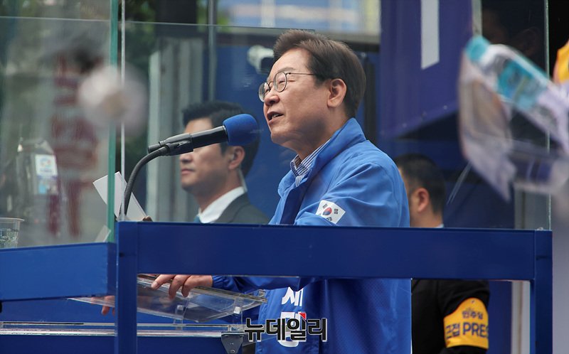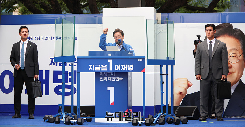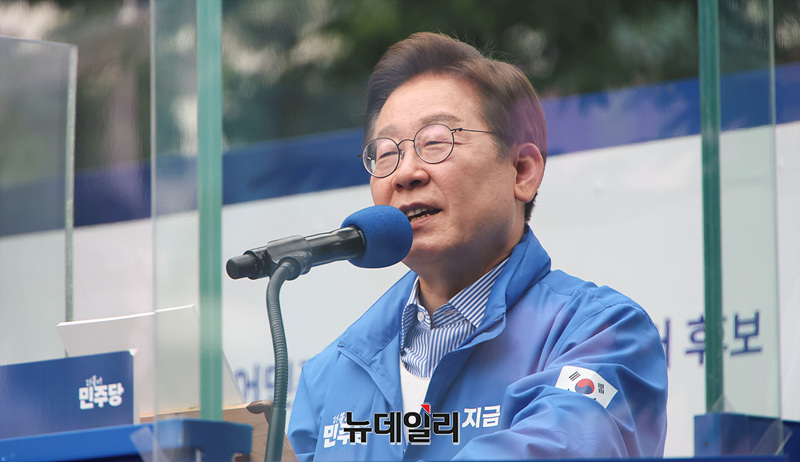 이재명 더불어민주당 대선 후보가 제21대 대통령 선거를 하루 앞둔 2일 오후 경기 성남시 야탑역 광장에서 열린 유세현장에서 지지를 호소하고 있다. (경기 성남=서성진 기자)