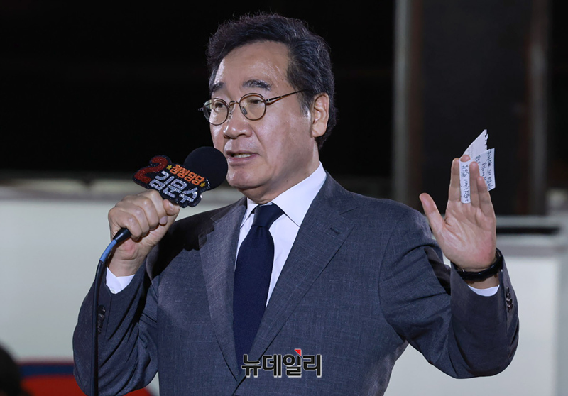 이낙연 전 국무총리가 마지막 선거유세날인 2일 밤 서울 중구 서울광장에서 열린 김문수 국민의힘 대선후보 피날레 유세에서 찬조연설을 하고 있다.