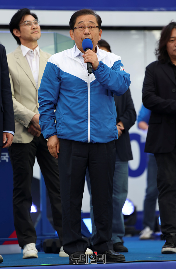 호사카 유지 교수가 제21대 대통령 선거를 하루 앞둔 2일 오후 서울 여의도 공원에서 열린 이재명 더불어민주당 대선 후보 유세현장에서 발언하고 있다.