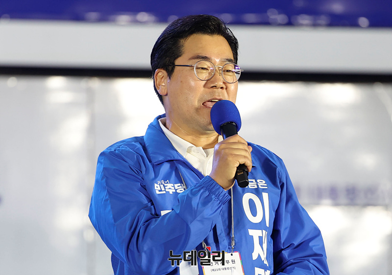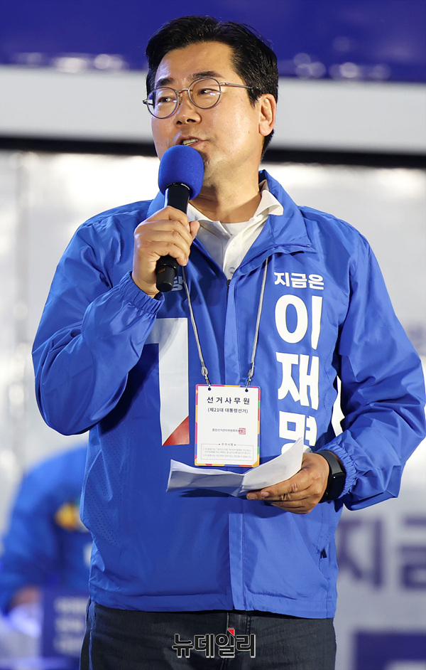 박찬대 더불어민주당 상임총괄선거대책위원장이 제21대 대통령 선거를 하루 앞둔 2일 오후 서울 여의도 공원에서 열린 이재명 대선 후보 유세현장에서 발언하고 있다.